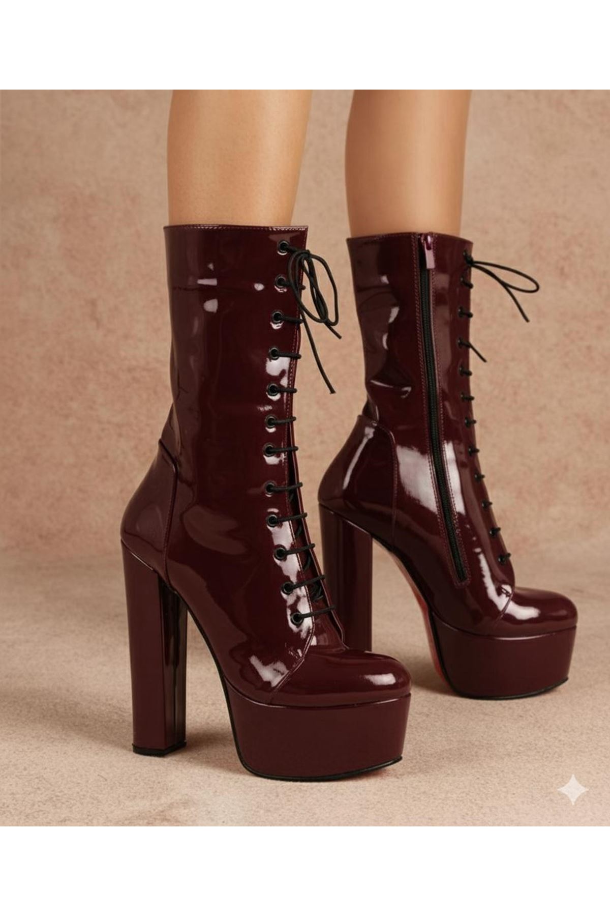 Duke Bordo Rugan Platfrom Kalın Topuklu Kadın Bot