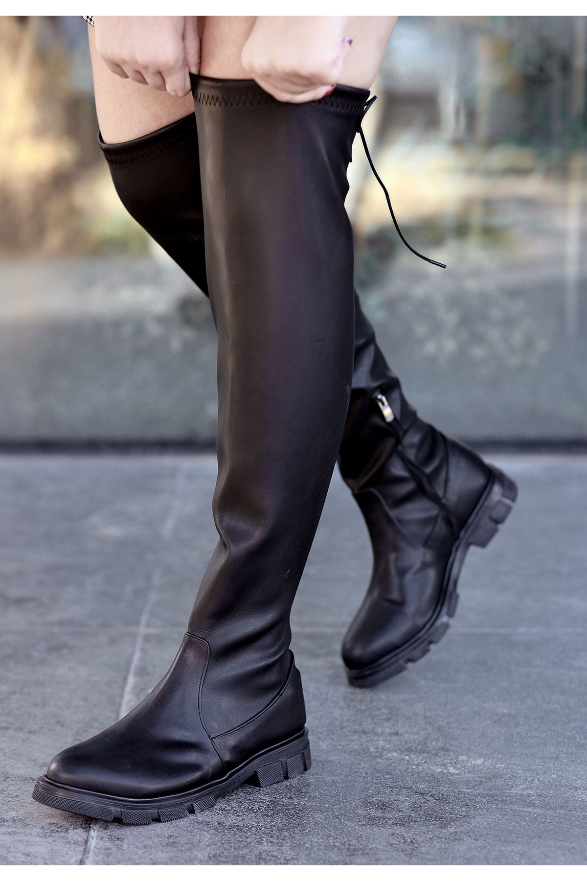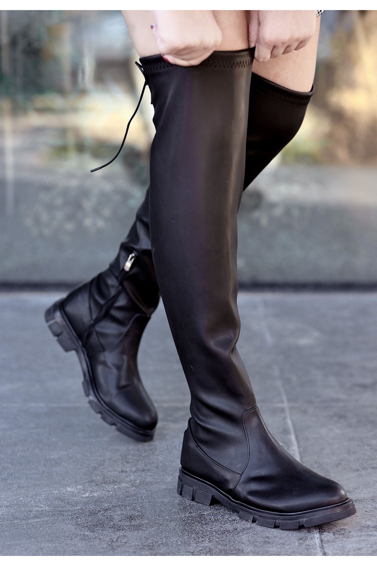 Iyan Siyah Cilt Çorap Çizme