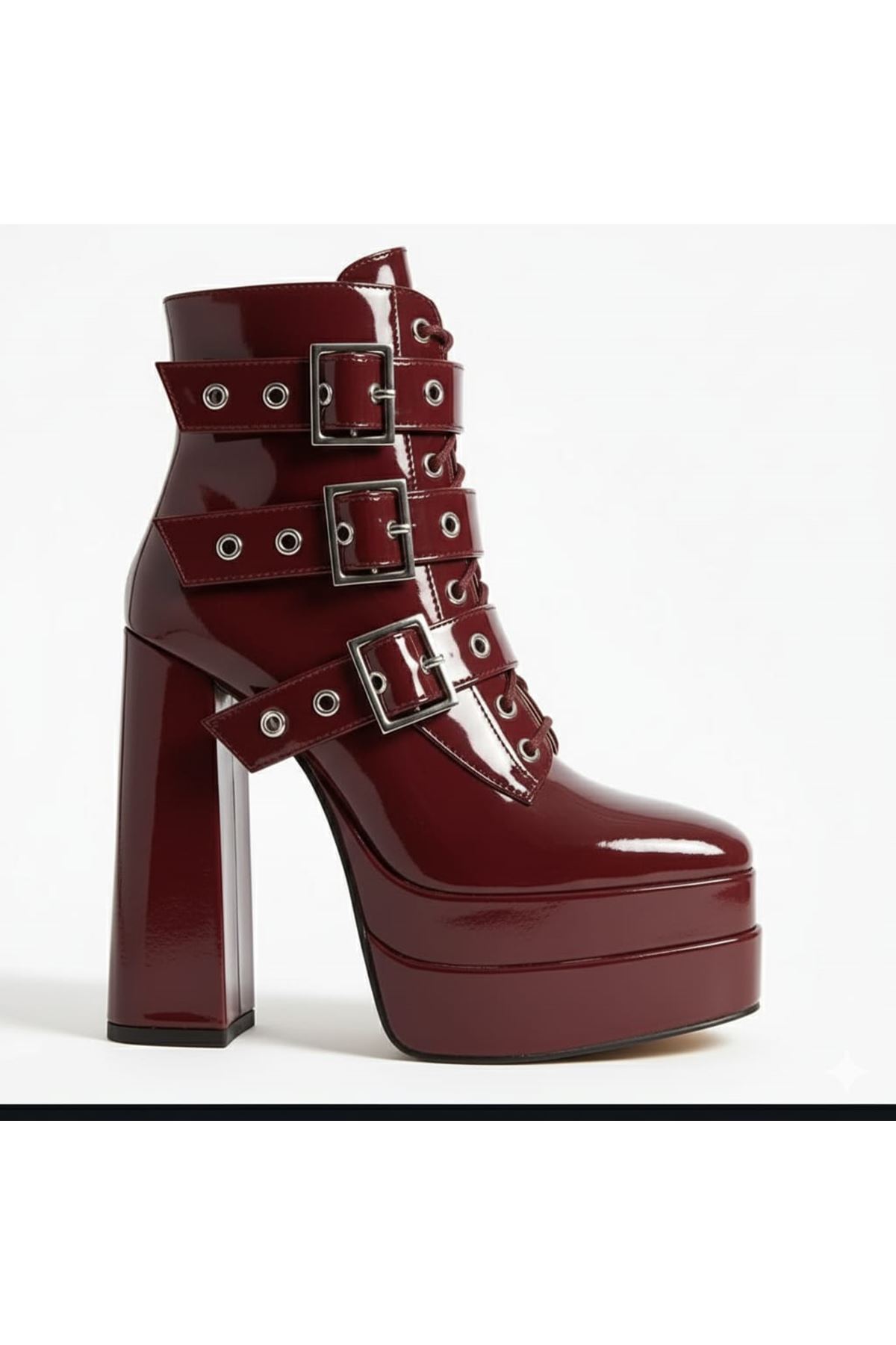 Kadın Platform Yüksek Topuklu Bot Gotik Bordo Rugan