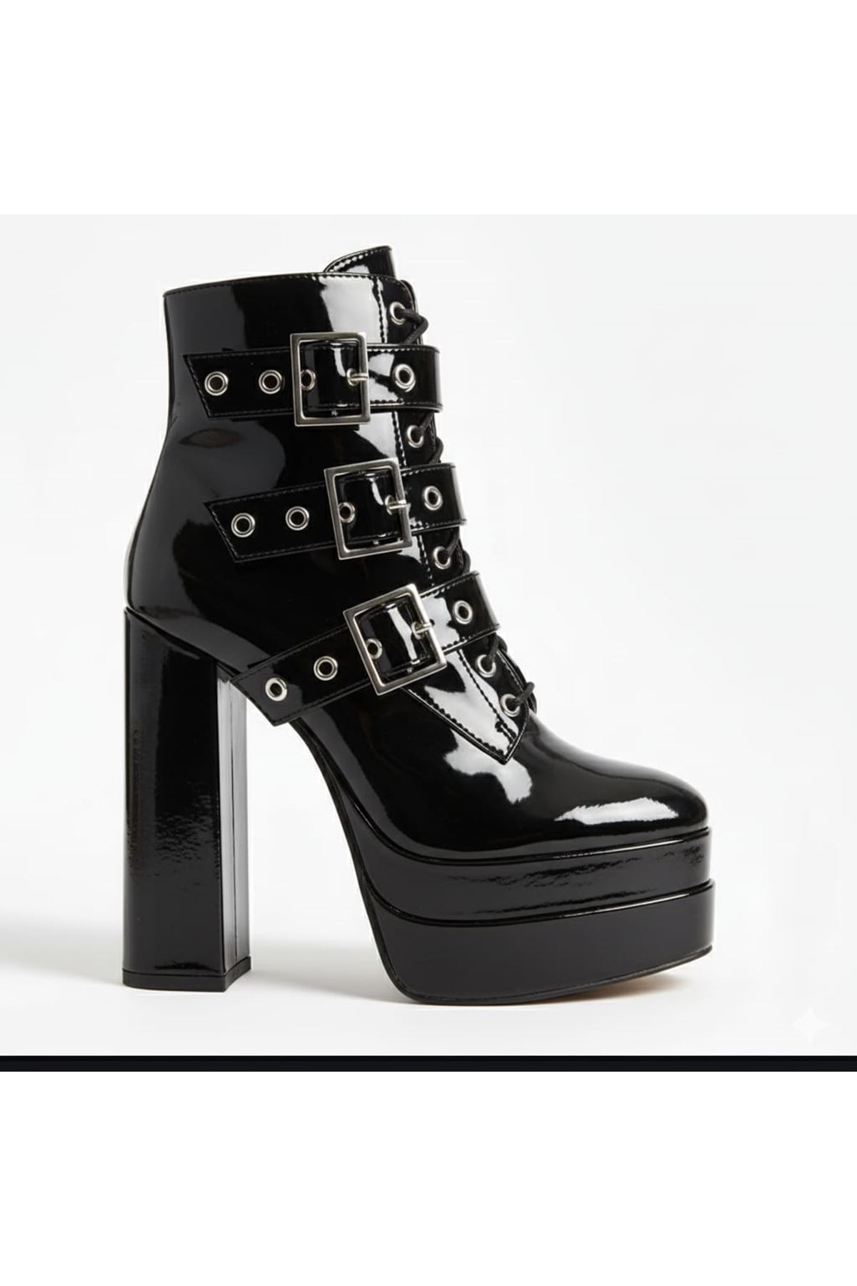 Kadın Platform Yüksek Topuklu Bot Gotik Siyah Rugan