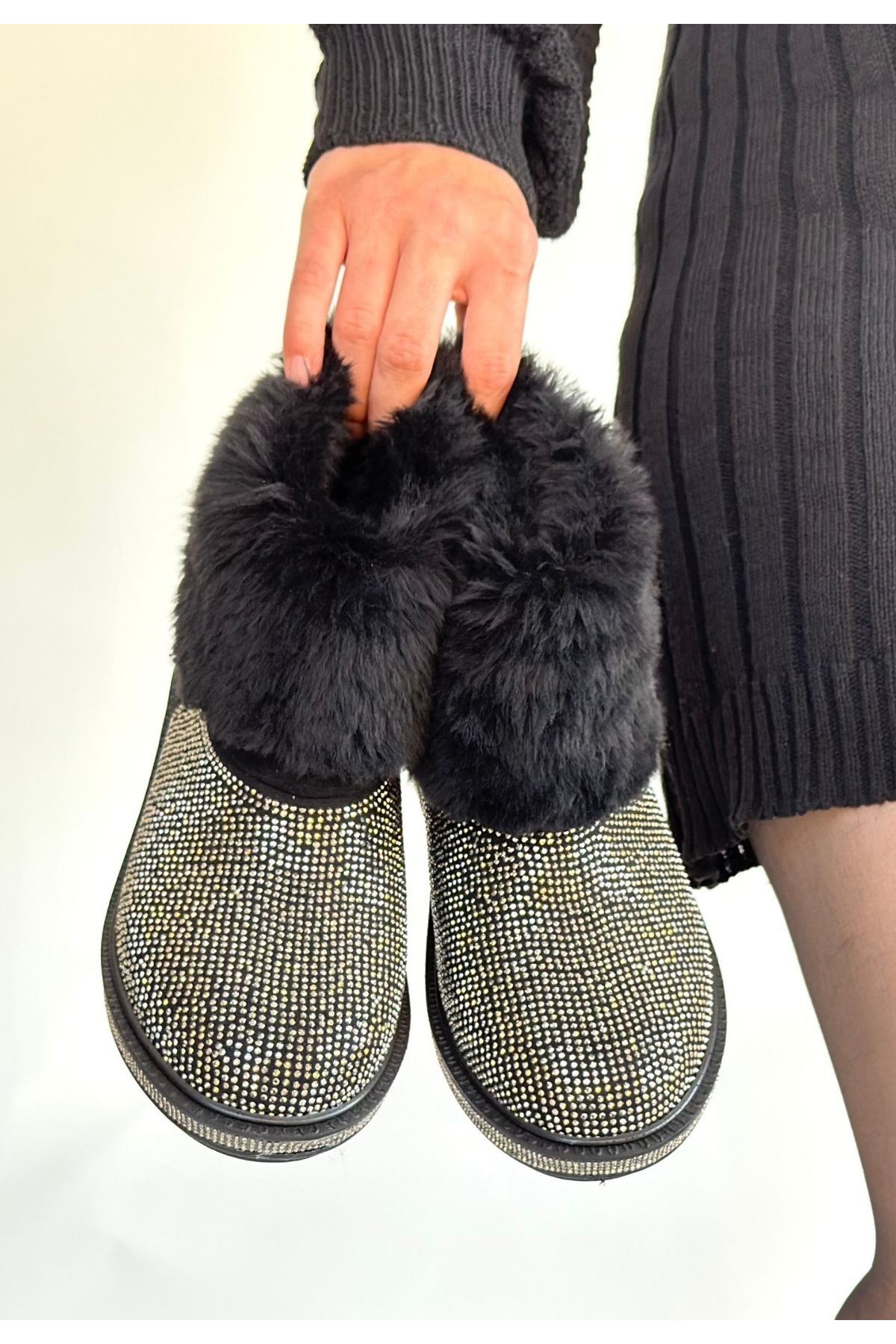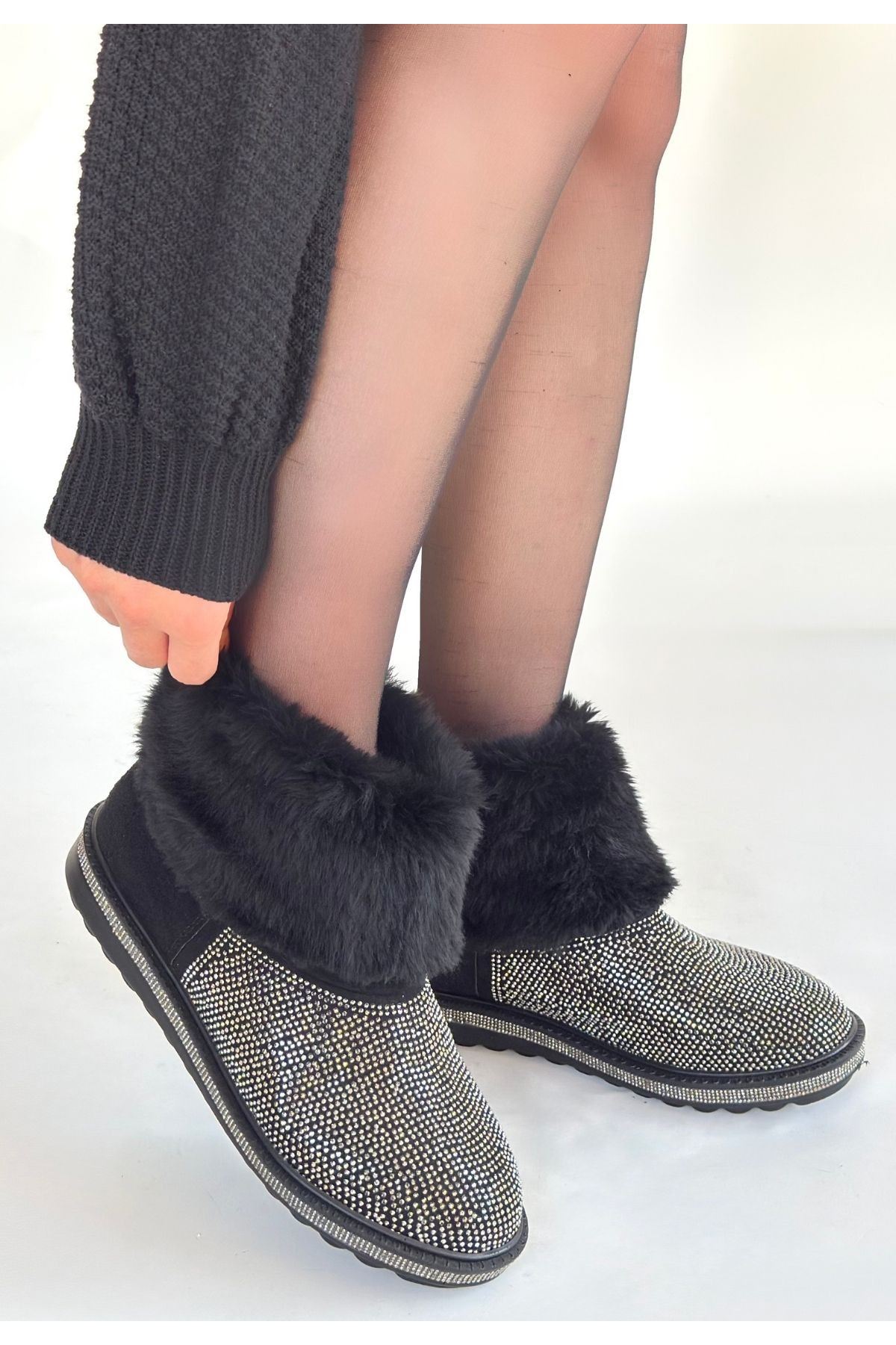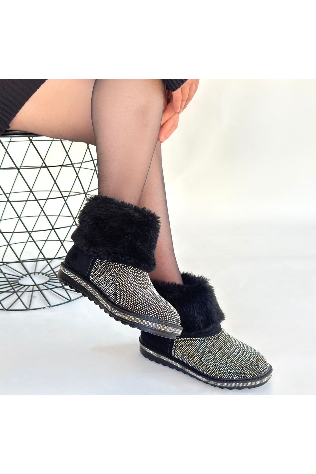 Linka Siyah Süet Gümüş Boncuk İşlemeli Bot