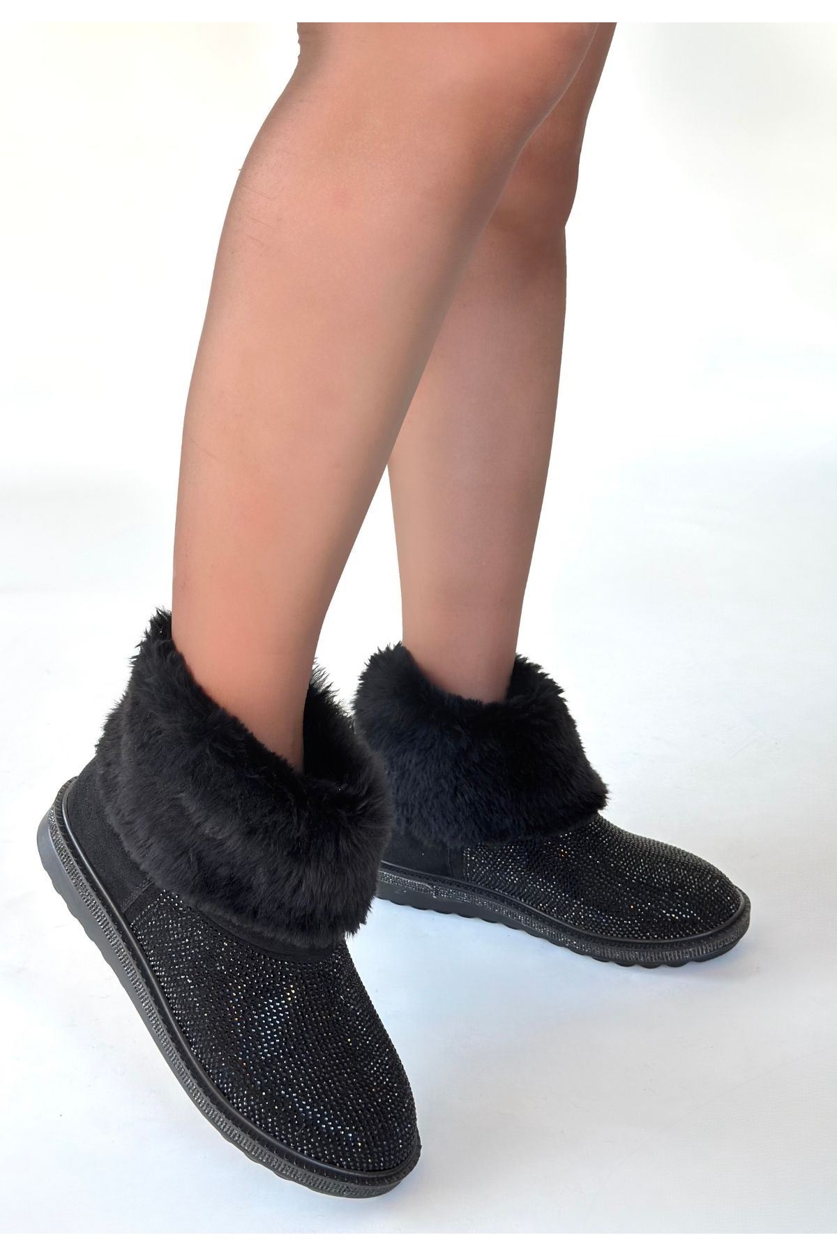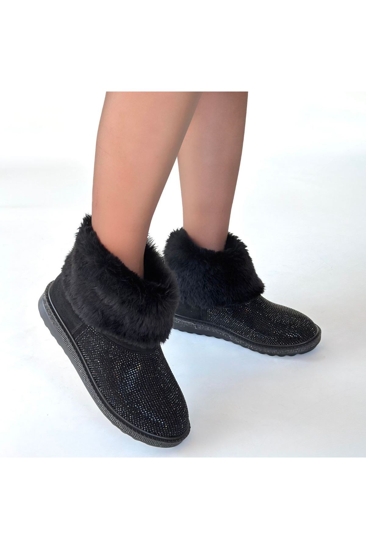 Linka Siyah Süet Siyah Boncuk İşlemeli Bot