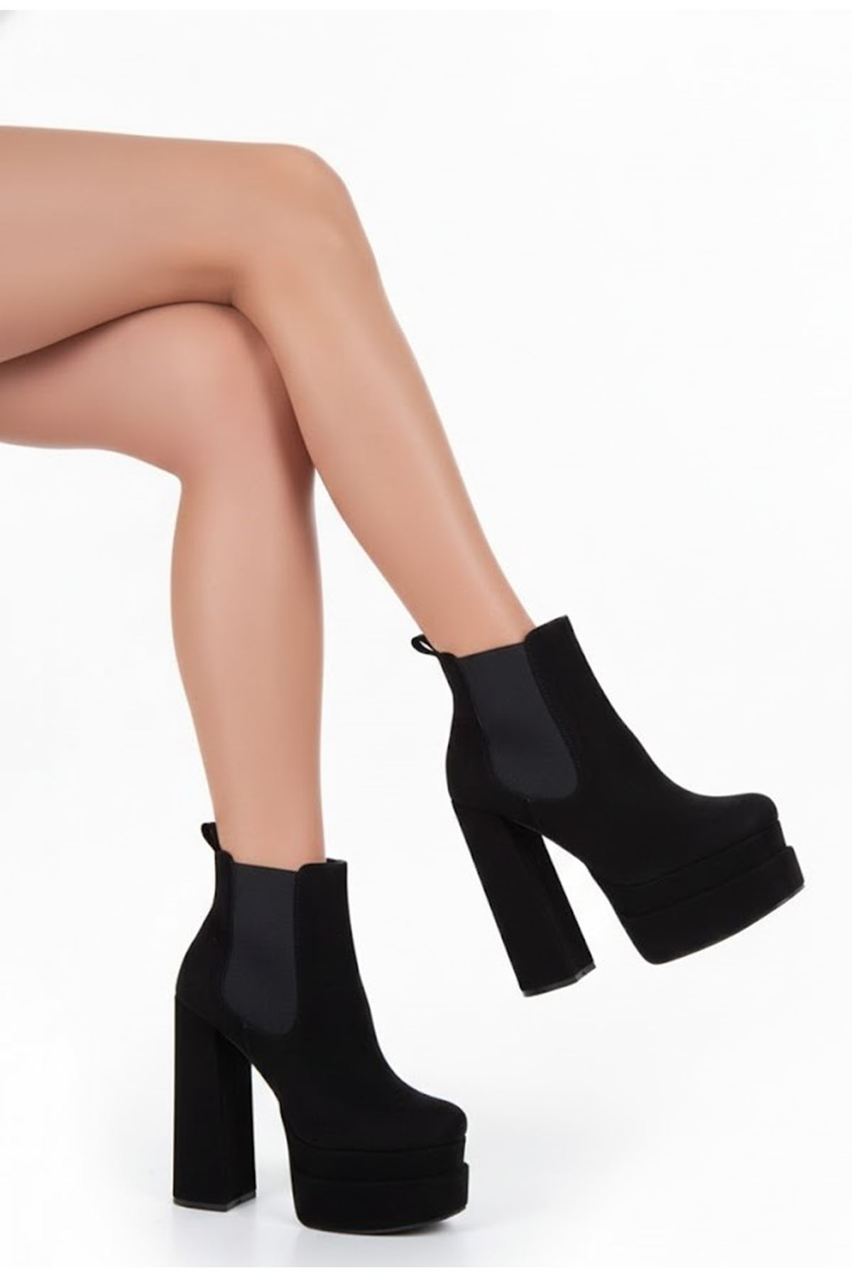 Moduss Siyah Süet Tasarım Çift Platform Kadın Ayakkabı