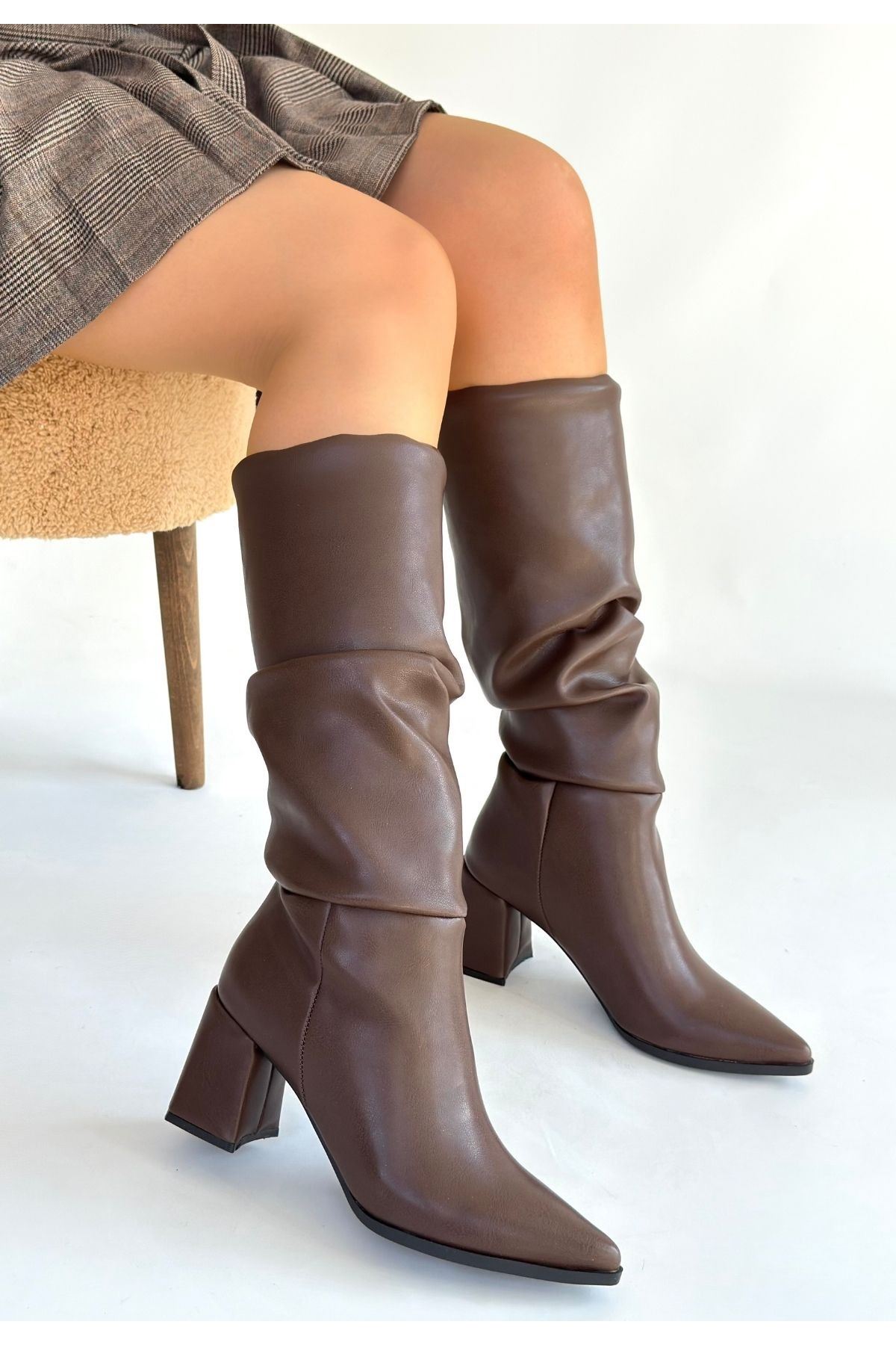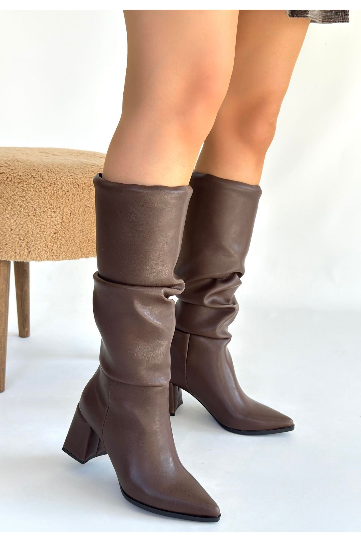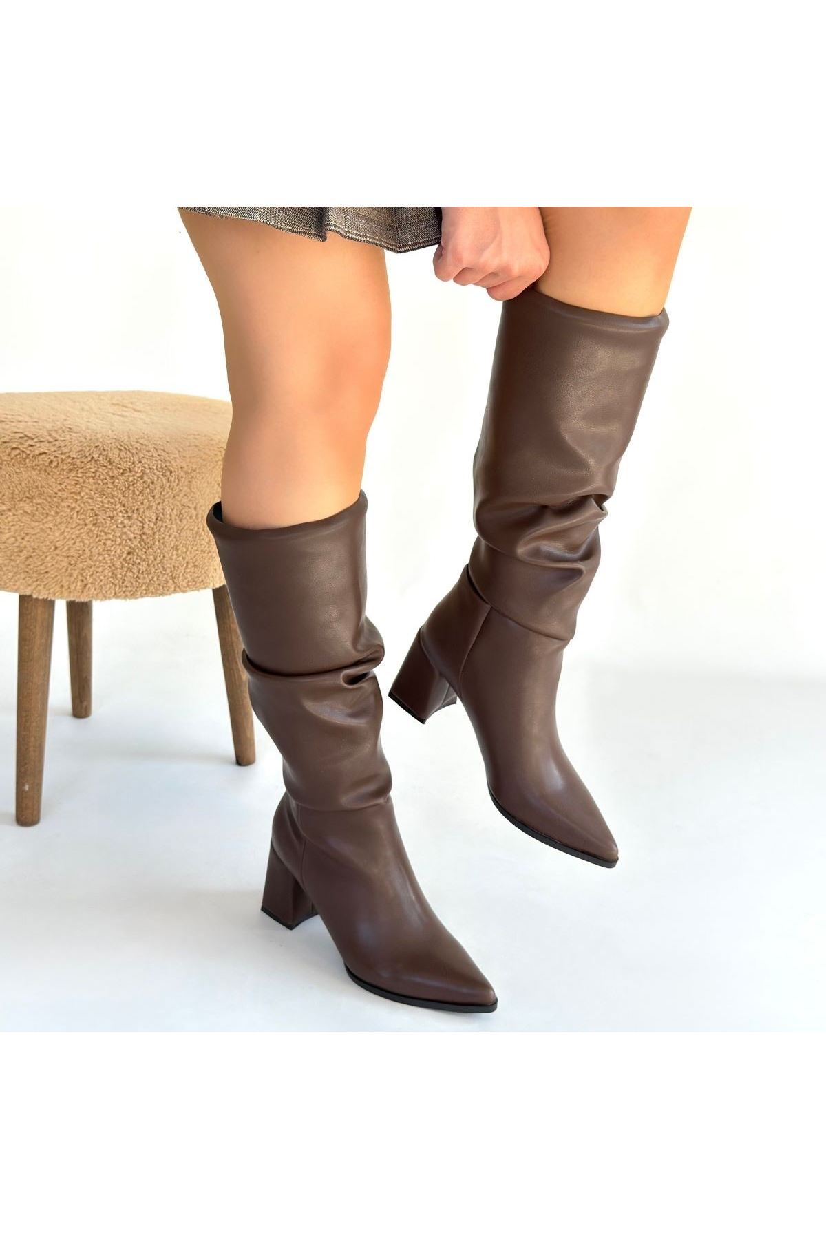 Detay: Topuklu Diz Altı Körüklü Çizme