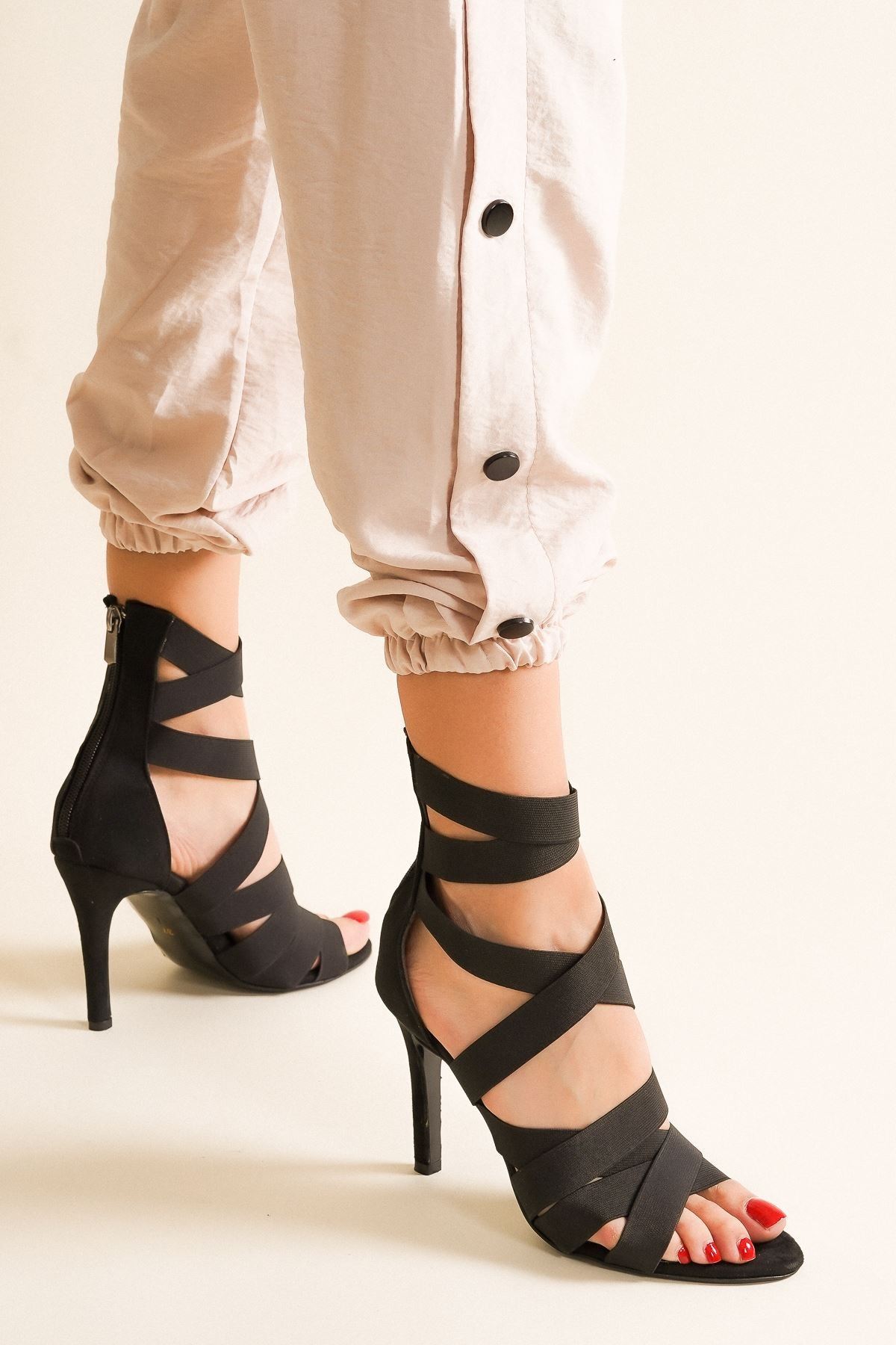Siyah Süet Rasha Lastikli Topuklu Ayakkabı