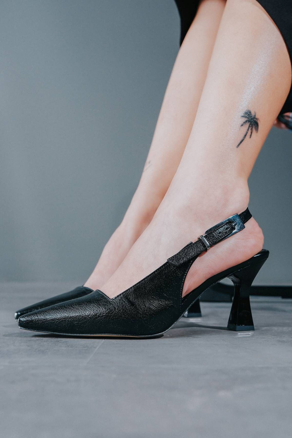 Siyah Sultan Tasarım Tokalı Kadın Topuklu Ayakkabı Niola