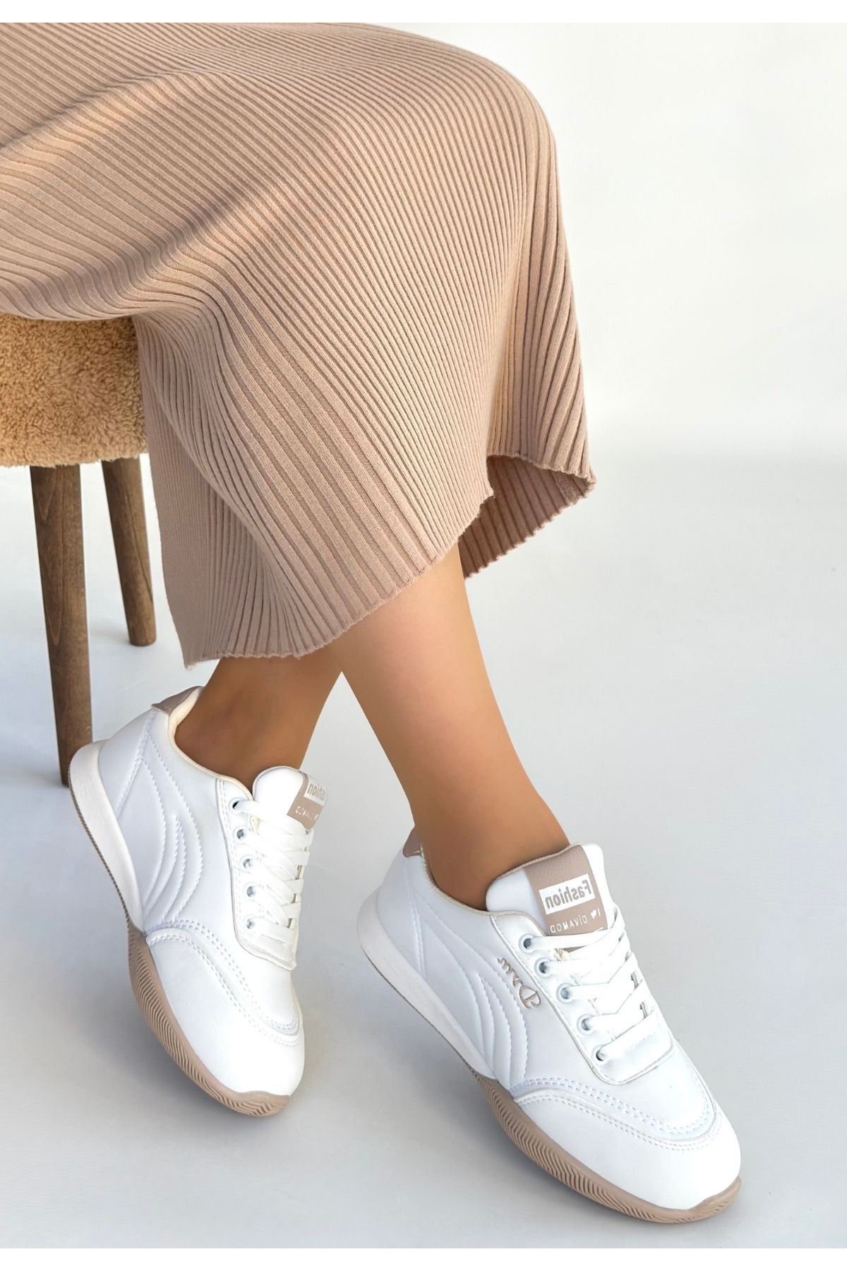 Tawen Beyaz Cilt Bağcıklı Spor Ayakkabı