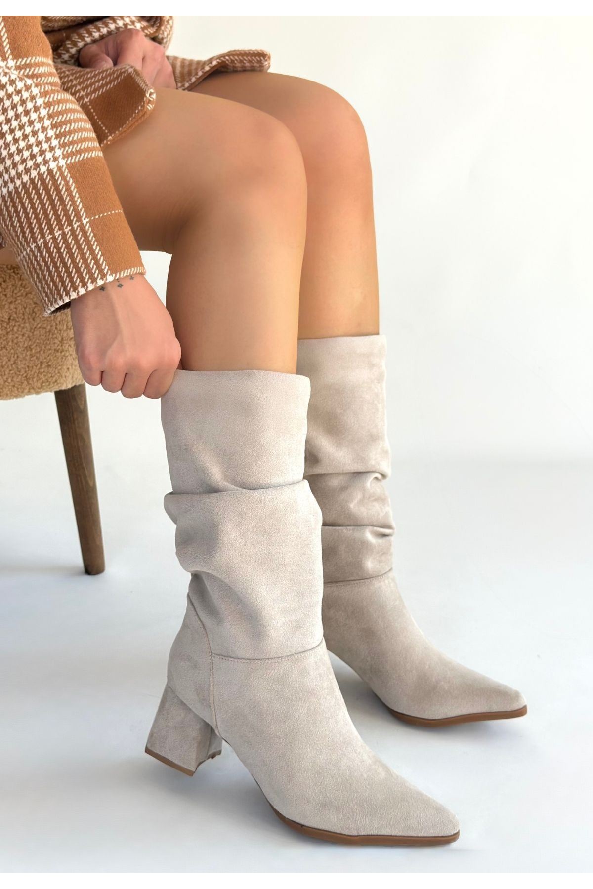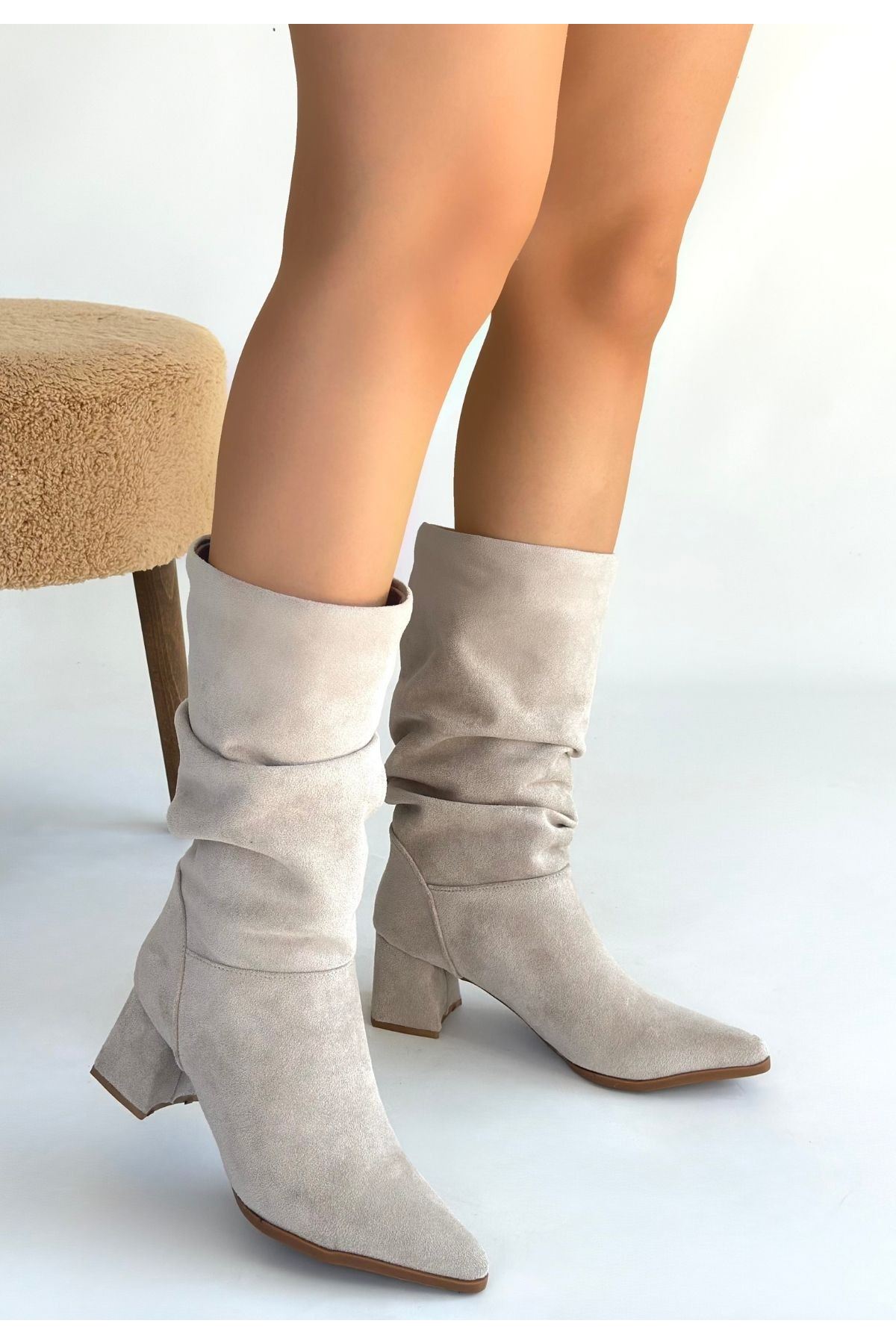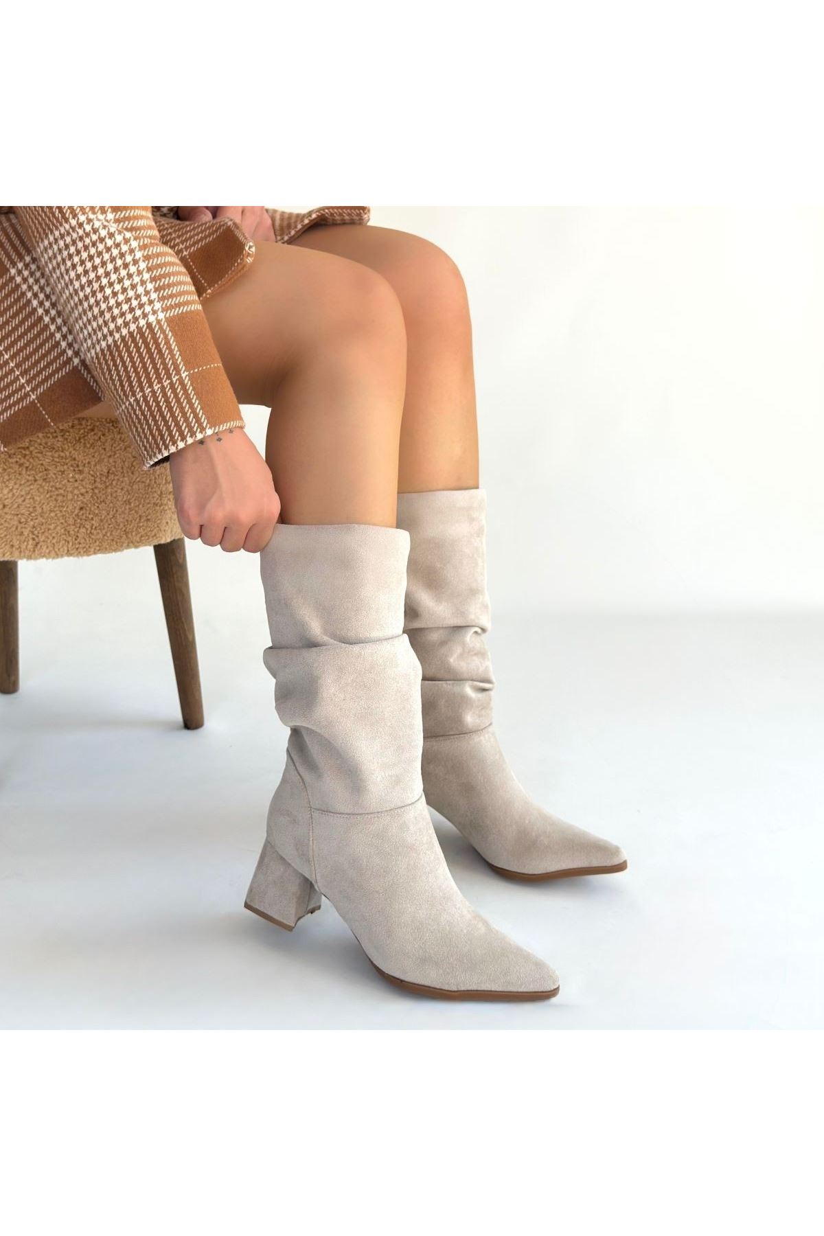 Detay: Topuklu Diz Altı Körüklü Çizme