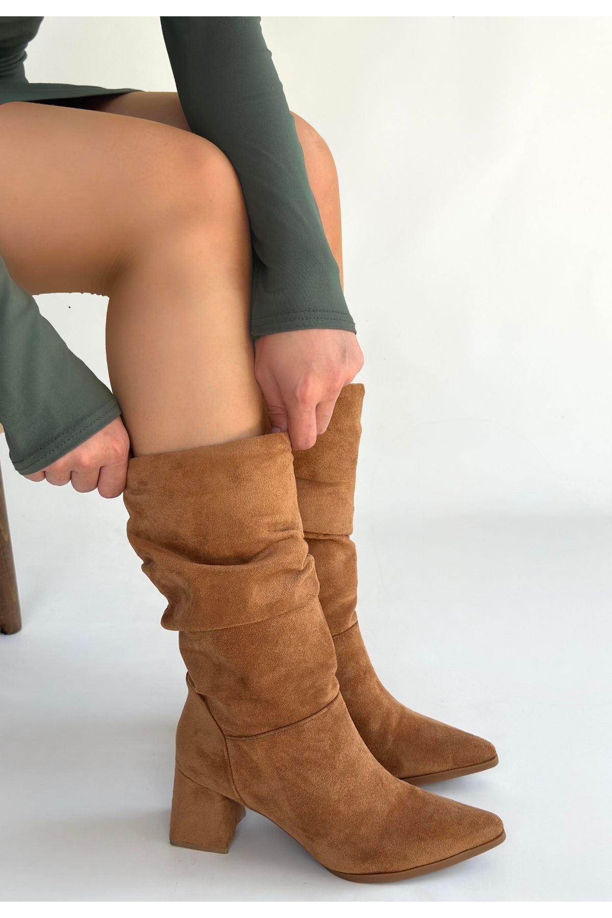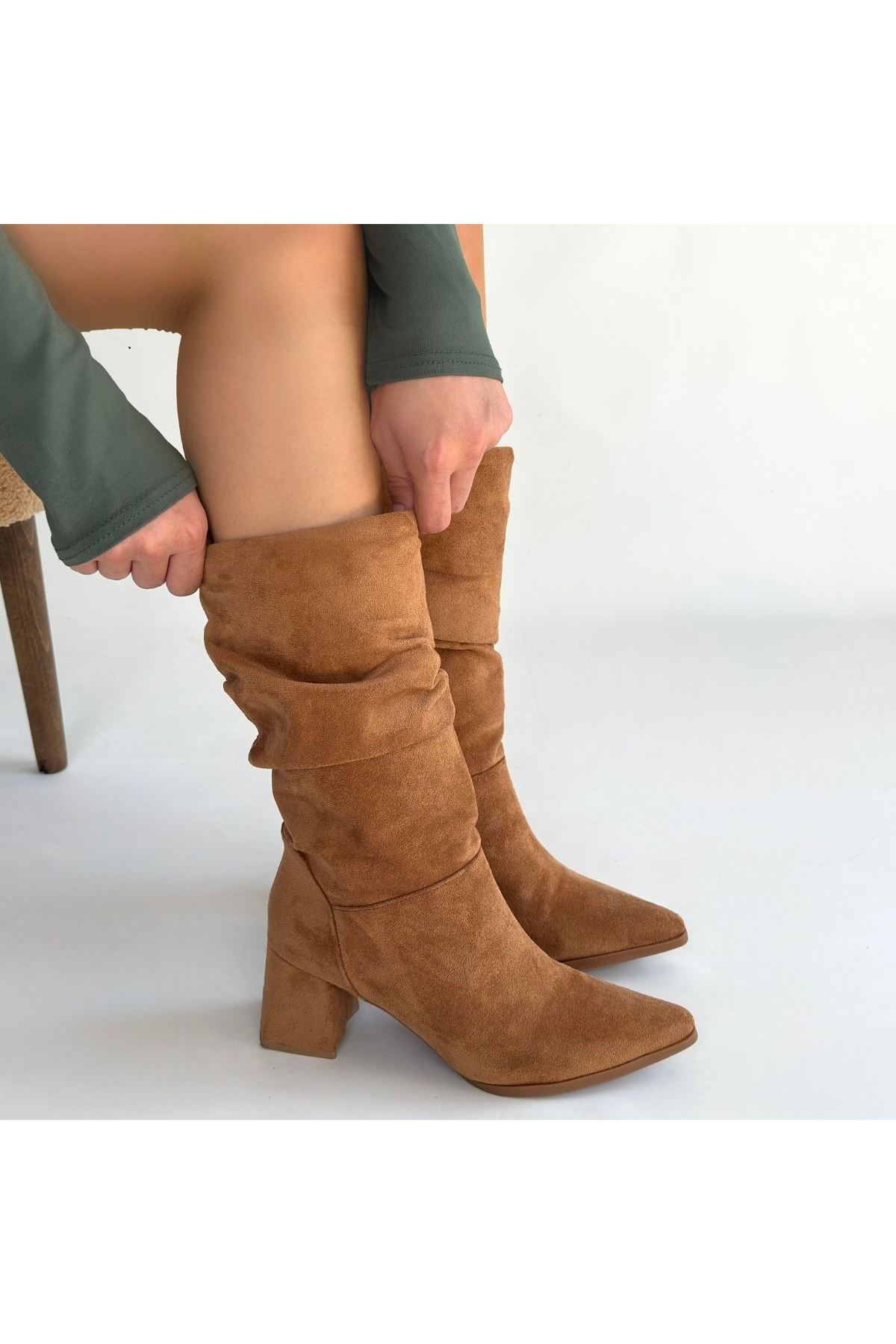 Detay: Topuklu Diz Altı Körüklü Çizme