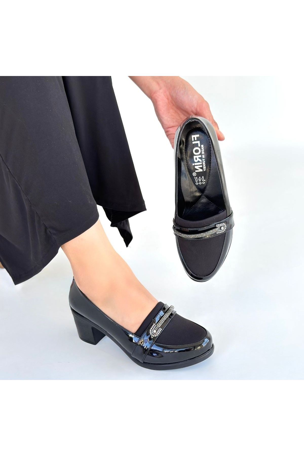 Yoer Siyah Rugan Dolgu Topuk Ayakkabı